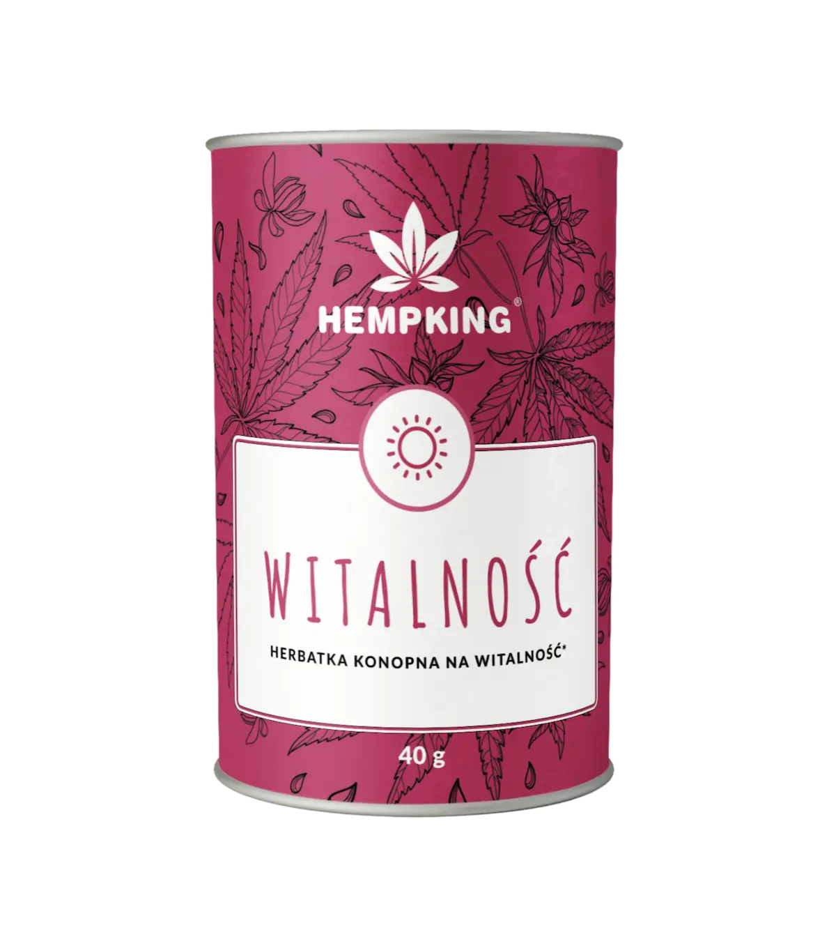 Herbatka Konopna Witalność firmy HempKing to połączenie ziół, korzeni i roślin zwiększających witalność - pozytywnie wpływają na samopoczucie, dodaję energii i siły do życia. Hibiskus wspiera kondycję fizyczną i psychiczną organizmu oraz dodaje energii, moringa i imbir wspomagają metabolizm glukozy i pomagają utrzymać właściwy poziom cukru we krwi, a kurkuma wspiera układ immunologiczny. Kannabidiol (CBD) zawarty w konopiach wspiera regenerację organizmu oraz chroni układ sercowo naczyniowy.